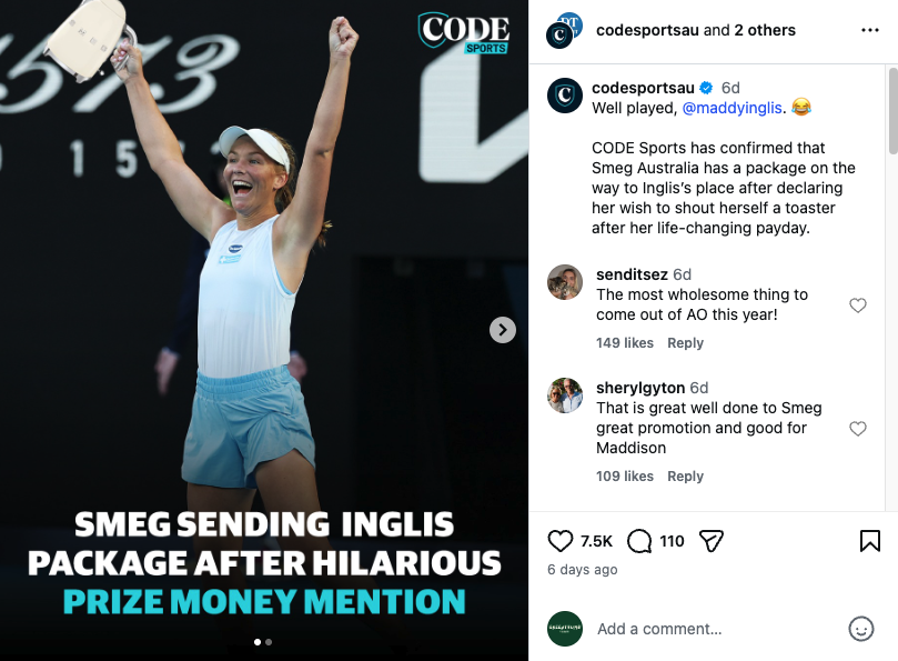 If you missed it, she made it through to round four for the first time ever, and in her post-match interview she was asked what she’d spend her prize money on. Her answer? A Smeg toaster and kettle. Which is honestly one of the most relatable things I’ve ever heard from a professional athlete. It’s cute, but it’s also a little bit brutal. Because it really highlights how hard it must be to compete at that level and still be scraping by. You’re on TV. You’re representing Australia. You’re playing at the Australian Open… and your big dream purchase is a toaster.